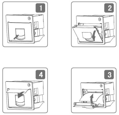 d)合上纸仓盖,打印头走纸轴压齐打印纸后稍用力把打印头走纸轴压回打印头,并把旋转