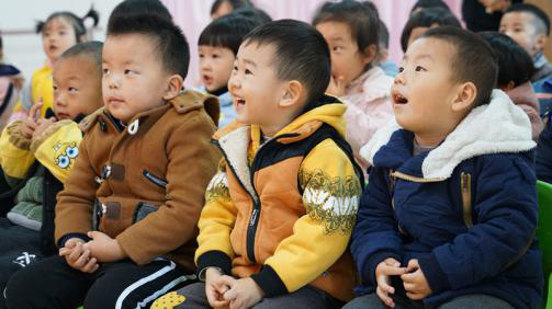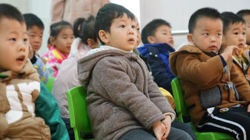小宝宝们排排坐,听志愿者上课。