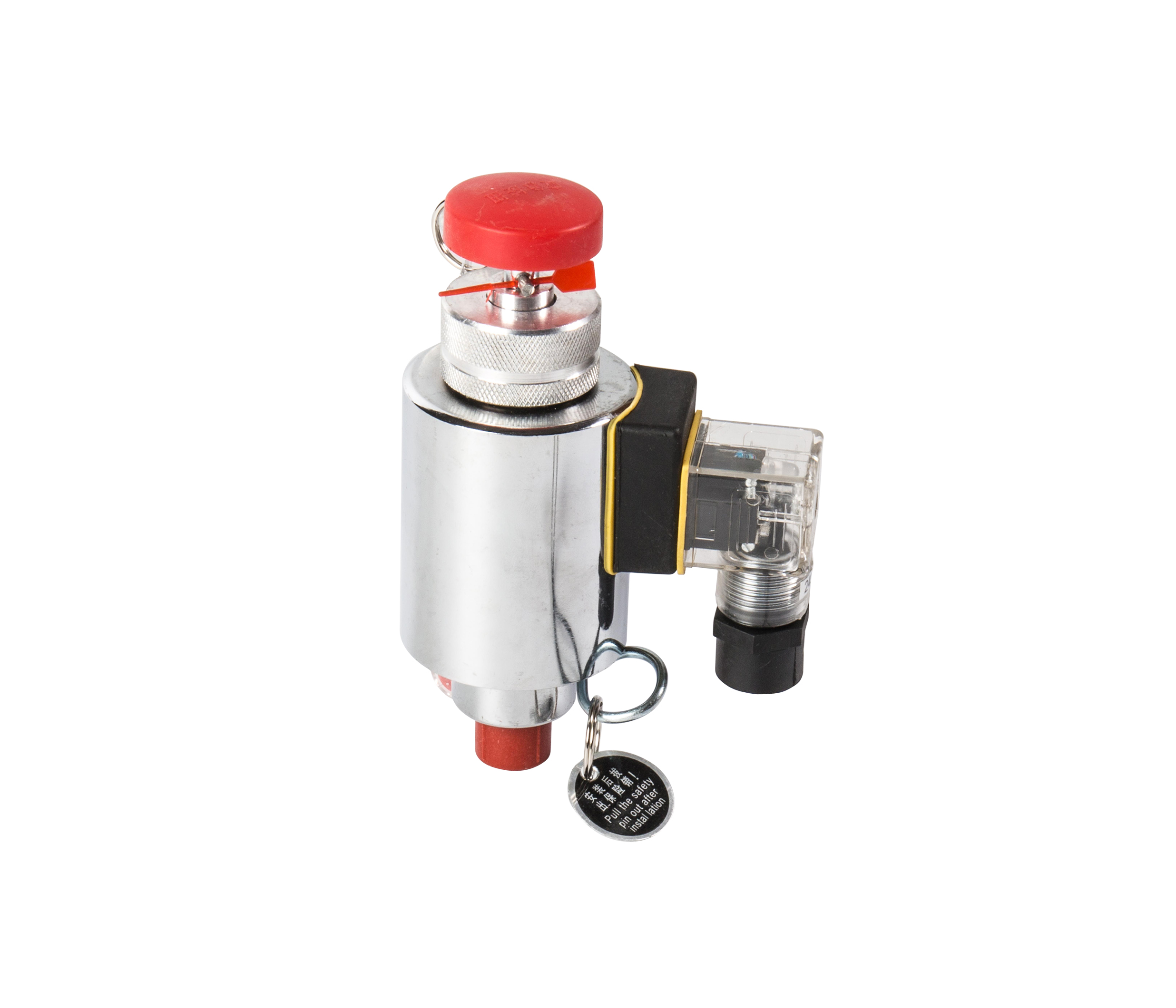 电磁驱动装置安装在容器阀上,电磁铁动作时击穿装置刺破容器阀上的密封膜片,使灭火剂释放。电磁驱动装置具有机械应急启动功能,进行应急启动时,首先应拔出机械应急保险销,用力按下机械应急启动装置,即可实现应急启动。